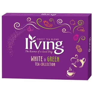 IrvingHerbata biała poziomkowa z mandarynkąHerbata biała figowa z gruszkąHerbata biała granat z agrestemHerbata zielona malinowaHerbata zielona ananasowaHerbata zielona mango i grejpfrutKarton30 x 1,5 gZapakowano w Unii EuropejskiejWszystkie nasze herbaty możesz kupić: www. sklep. irving.