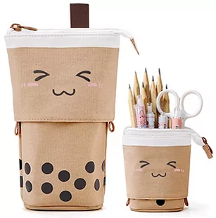 JANREAY Śliczny piórnik teleskopowy, 2 w 1, uchwyt na ołówki, zwijany, do biura, dla kobiet, dziewcząt, chłopców, brązowy, Herbata Bubble, jeden rozmiar, Dodatkowa kieszeń