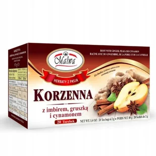 Herbata Korzenna z Imbirem, Gruszką i Cynamonem marki Malwa to doskonały wybór na chłodne dni. Ta wyjątkowa mieszanka łączy w sobie intensywnie rozgrzewający imbir z delikatną słodyczą gruszki i aromatycznym cynamonem, tworząc napój o niezwykłym smaku i aromacie. W skład herbaty wchodzą również liście rooibos, skórka pomarańczy, prażony korzeń cykorii, anyż, goździki oraz korzeń lukrecji, co czyni ją nie tylko pyszną, ale i zdrową. Idealna do relaksu po całym dniu, herbata ta przeniesie Cię w cudowne zakątki świata, zapewniając chwilę odprężenia i przyjemności.