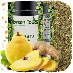 Pigwa z imbirem Pigwa i imbir to doskonałe dodatki do gorących naparów dlatego znalazły się one pośród liści zielonej herbaty. Dzięki nim napój nie tylko rozgrzewa, ale zyskuje też subtelny, delikatnie kwaśny posmak. Składniki: herbata zielona, pigwa, imbir, aromat. Wartość odżywcza w 100g: wartość energetyczna 260,0 kJ / 62,0 kcal, tłuszcze 0,0 g, węglowodany 11,0g (w tym cukry 9,1g), błonnik 4,1g, białko 0,8g, sól 0,0g, sód 0,0g.
