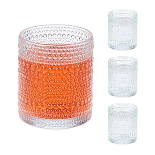 x głęb. : ok. 10 x 8,5 cm - Pojemność: maks. 410 ml na szklankę - Waga: ok. 390 g na szklankę - Materiał: szkło - Kolor: przezroczysty Szklanki do wody dla każdego gospodarstwa domowego - Szklanki do napojów w zestawie 4 sztuk są wykonane ze szkła - Przezroczysty wzór z motywem kropli - Atrakcja na przyjęciach i wieczorach koktajlowych -idealny prezent na pierwszy dom - Łatwe do czyszczenia w zmywarce Zakres dostawy - 4x szklanki do napojów - Elementy dekoracyjne nie wchodzą w zakres dostawy