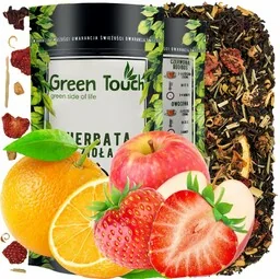 Sen nocy letniej herbata czarna z dodatkami Składniki: herbata czarna Yunnan, trawa cytrynowa, jabłko suszone, pomarańcza suszona 7%, truskawka liofilizowana, hibiskus, kwiat pomarańczy 3%, aromaty. Herbata ta to prawdziwe letnie orzeźwienie! Wyczujesz w niej wyraziste, owocowe nuty i smak cytrusów pomarańczy i cytryny. Tłem dla tych dodatków są liście herbaty Yunnan to dzięki nim napar jest tak intensywny. Wartość odżywcza w 100g: