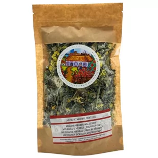 Dziurawiec i rdest hamują wzrost bakterii i wirusów oraz działają przeciwzapalnie. Kwasy organiczne dziurawca aktywnie uczestniczą w procesach metabolicznych, zwiększając wydzielanie śliny, żółci i soku żołądkowego. Z kolei olej dziurawca ma działanie antybakteryjne i kojące,a jeżyna, podbiał i poziomka wzmacniają odporność organizmu. Składniki: liście poziomki pospolitej (Fragaria vesca), liście podbiału pospolitego (Tussilago farfara), rdest różnolistny (Polygonum aviculare), dziurawiec zwyczajny (Hypericum perforatum), tasznik pospolity (Capsella bursa-pastoris), kocanki piaskowe (Helichrysum arenarium), babka zwyczajna (Plantago major), liście jeżyny popielicy (Rubus caesius), kukurydza zwyczajna (Zea mays), uczep trójlistkowy (Bidens tripartita). Bez sztucznych dodatków.