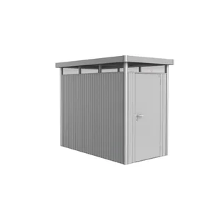 Metalowy domek ogrodowy HighLine wielkość HS (275x155cm), drzwi pojedyncze, kolor srebrny metaliczny Domek ogrodowy Biohort Highline to doskonałe rozwiązanie dla osób poszukujących przestronnego i trwałego schowka. Dzięki przemyślanej konstrukcji i nowoczesnemu designowi, domek idealnie sprawdzi się jako miejsce na narzędzia, sprzęty ogrodowe czy rowery, jednocześnie stanowiąc ozdobę każdego ogrodu. 20 lat gwarancji - nie wymaga konserwacji, malowania i innych dodatkowych prac. W wyposażenieu standardowym 2 półki, 4 wieszaki narzędziowe i 2 uchwyty narzędziowe. Ponadto dostępne akcesoria pozwalają na indywidualną konfigurację na miarę indywidualnych potrzeb.