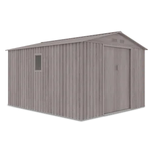 Domek na narzędzia HUDSON 9x10 Light WoodHardmaister Opis: Zadbaj o bezpieczne miejsce składowania swoich ogrodowych „pomocników”. Domek HUDSON 9x10 to uniwersalna, pojemna szopa narzędziowa. Nada się do przechowywania kosiarki i sprzętu ogrodniczego, ale także leżaków, mebli tarasowych czy rowerów. Wykonano ją z ocynkowanej stali, dzięki czemu jest solidna i odporna na warunki atmosferyczne.