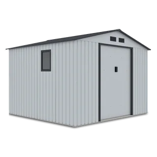 Opis: Domek HUDSON 9x8 light grey to uniwersalna szopa narzędziowa z przesuwanymi drzwiami. Jest idealnym miejscem do przechowywania narzędzi, rowerów, kosiarek oraz sprzętu ogrodniczego. Całość została wykonana z wysokiej jakości materiałów - rama ze stali ocynkowanej oraz ocynkowane ogniowo panele stalowe o grubości 0,25 mm. Dzięki temu zapewniona jest najlepsza wytrzymałość, stabilność, trwałość oraz odporność na warunki atmosferyczne i korozję. Dwuspadowy dach zapobiega gromadzeniu się wody i śniegu, dzięki czemu gwarantuje bezpieczeństwo użytkowania.