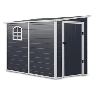 Najważniejsze cechy: Nie wymaga konserwacji Wymiary z dachem 143x284 cm Wysokość drzwi 164 cm Drzwi na zawiasach Kolor: Cold Grey Cyrkulacja powietrza Możliwość zamontowania kłódki na drzwiach Możliwość postawiania domku wzdłuż ściany budynku lub ogrodzenia Całoroczny Praktyczne okno Otwór wentylacyjny Spadowy dach Łatwy montaż, bez specjalistycznej wiedzy technicznej Odporny na uszkodzenia mechaniczne Konstrukcja z wytrzymałego polipropylenu Nie zawiera podłogi Dane techniczneWymiary zewnętrzne z dachem: szerokość: 143 cm głębokość: 248 cm wysokość: