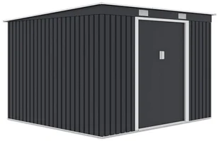 Spadzisty, stalowy dach skutecznie odprowadza wodę deszczową, zapewniając ochronę i odciążenie całej konstrukcji. Najważniejsze cechy: Wymiary z dachem 261x241 cm Wysokość drzwi 157 cm Kolor: Cold Grey Podwójne drzwi przesuwne Cyrkulacja powietrza Nie wymaga konserwacji Możliwość zamontowania kłódki na drzwiach Całoroczny Otwory wentylacyjne Spadzisty dach Łatwy montaż, bez specjalistycznej wiedzy technicznej Odporny na korozję Nie zawiera podłogi Stalowa konstrukcja Dane techniczneWymiary domku u podstawy: szerokość: 251 cm głębokość: