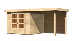 KARIBU dom drewniany ASKOLA 3,5 + nadstawka 240 cm łącznie ze ścianą tylną (9176) natur