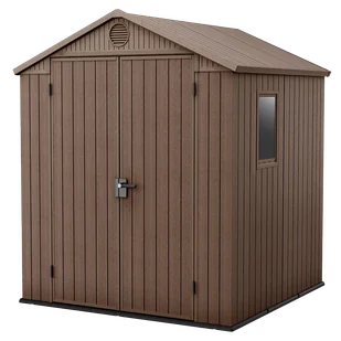 Domek ogrodowy DARWIN 6 × 6 w kolorze brązowym od marki KETER. Wykonany z tworzywa sztucznego, które jest odporne na wodę, śnieg i promieniowanie UV. Wykończenie powierzchni w imitacji drewna. Oferowany w kolorze brązowym. Wymiary drzwi wynoszą 119 × 187,5 cm.