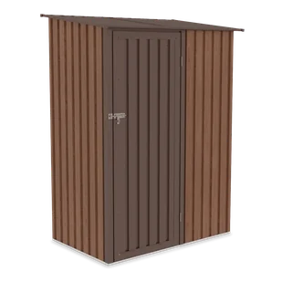 Walnut Naturalne kolory Możliwość dostawienia domku przy ścianie budynku Stalowa konstrukcja Całoroczny Spadzisty dach Skrzydłowe drzwi z zamkiem ryglowym Łatwy montaż, bez specjalistycznej wiedzy technicznej Odporny na korozję Nie zawiera podłogi Możliwość zamontowania kłódki Idealny do małych ogrodów Dane techniczneWymiary zewnętrzne z dachem: szerokość: 143 cm głębokość: 89 cm wysokość: 186 cm Wymiary drzwi: szerokość: 66 cm wysokość:
