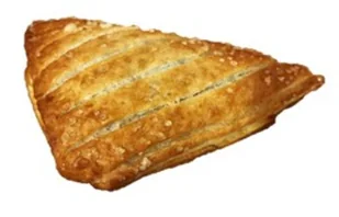 Ciastko z ciasta francuskiego z wiśniami, surowe.Pieczywo wyprodukowane z ciasta głęboko mrożonego.