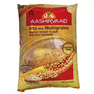 Mąka pszenna razowa wieloziarnista Aashirvaad 10kg Mąka pszenna razowa z mieszanką ziaren- Aashirvaad Multigrain Atta Od dawna najbardziej zaufaną marką Atta w Indiach jest 'Aashirvaad "- nadchodzi nowa odmiana - Aashirvaad Atta with Multigrains (wieloziarnista). Jest to mieszanka 6 naturalnych zbóż: pszenicy, kukurydzy, soi, ciecierzycy, owsu oraz babki płesznik. Ten zupełnie nowy wariant daje zdrową opcję dla konsumentów. Aashirvaad Atta Multigrain jest doskonałym źródłem witamin, które są niezbędne dla wzmocnienia odporności i mają dodatkową zawartość białka, aby poprawić wytrzymałość organizmu.