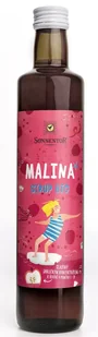 Sonnentor, Syrop Malinowy, BIO, 500 ml Miłość od pierwszego łyku. Daj się oczarować soczystym smakiem malin, solonych lub w towarzystwie świeżych owoców i plasterka cytryny. Dzięki temu syropowi możesz przygotować orzeźwiający napój dla dzieci i zachwycić nim każdego gościa. Można nim także posłodzić i aromatyzować herbatę, mleczny ryż, sałatkę owocową czy jogurt. Słodkie dokuczanie.