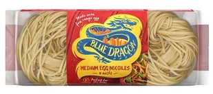 Blue Dragon Makaron Jajeczny 250g Blue Dragon Makaron Jajeczny 250g Możliwość zakupu w opakowaniu zbiorczym: 8 sztuk. Makaron jajeczny Blue Dragon to pasta w formie cienkich nitek, tworzących gniazda. Makarony jajeczne są popularnym składnikiem kuchni azjatyckiej - można spotkać je również pod nazwą makaron mie. Makaron jajeczny ma intensywny smak i bardzo dobrze komponuje się z różnego rodzaju sosami - ma porowatą powierzchnię, która dobrze je wchłania. Makaron jajeczny Blue Dragon pasuje do przepisów kuchni azjatyckiej, warto podać go na przykład w połączeniu z wołowiną teriyaki.