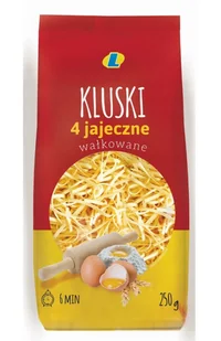 Makaron Kluski 4 jajeczne wałkowane - 250g Makaron Kluski 4 jajeczne wałkowane to tradycyjny produkt stworzony z myślą o miłośnikach domowej kuchni. Dzięki z...