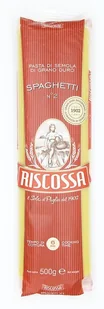Makaron Spaghetti 500 g Pszenica durum użyta do produkcji makaronu pochodzi z rejonu Pugli i Bazylikaty, dzięki czemu makaron ma odpowiedni kolor, odpowiedni poziom białka i nie deformuje się podczas gotowania. Firma nie używa produktów GMO. Makaron Spaghetti Marka: PASTIFICIO RISCOSSA Gramatura/Pojemność: 500 g Makaron Spaghetti 500 g Makarony Riscossa tworzone są z pasją i profesjonalizmem.