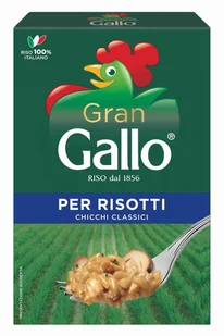 500 g Ryż do Risotto Gran Gallo 500 g Firma Riso Gallo powstała w 1856 roku, dziś jest absolutnym liderem we Włoszech i jednym z największych producentów ryżu w Europie. Wśród gatunków ryżu Riso Gallo możemy odnaleźć m. in. Basmati, Carnaroli czy czarny ryż Venere. Ryż do Risotto Gran Gallo 500 g
