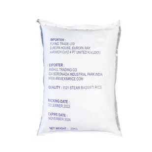 Ryż basmati Flying Trade 25kg Ryż basmati to aromatyczna odmiana długiego ziarna ryżu, która jest powszechnie uprawiana w Indiach i innych krajach południowoazjatyckich. Jest znany ze swojego charakterystycznego aromatu i delikatnego smaku. Ryż basmati często jest wykorzystywany w potrawach takich jak biryani, pulao oraz różne dania oparte na ryżu, ze względu na jego unikalne cechy. Uważany jest za odmianę ryżu premium i cieszy się popularnością ze względu na jakość i smak. http://www.