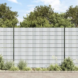Taśma na ogrodzenie, wykonana z odpornego na warunki pogodowe PVC, służy jako dekoracyjna, zapewniająca prywatność osłona na metalowy płot.