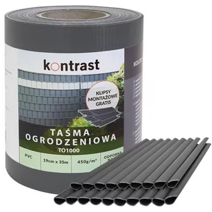 MOCNA TAŚMA OGRODZENIOWA KONTRAST O WYSOKIEJ ODPORNOŚCI 19cm x 35 m z KLIPSAMI MOCUJĄCYMI WYTRZYMAŁA TAŚMA OGRODZENIOWA WYSOKIEJ ODPORNOŚCI 35 m x 19 cm z KLIPSAMI MOCUJĄCYM Kontrast: TO1002 Kolor: RAL 9005 - Grafit