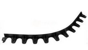 Obrzeża łączymy ze sobą za pomocą jednej kotwy, układamy na ziemi, profilujemy kształt jaki chcemy otrzymać i przytwierdzamy do podłoża przy pomocy plastikowych kotew.