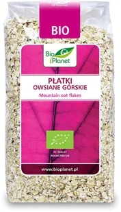Bio Planet Płatki owsiane górskie 300 g Bio. żywność. Ekologiczne płatki owsiane górskie uzyskuje się z gniecionych, rozdrobnionych ziaren owsa, poddanych obróbce hydrotermicznej Płatki owsiane to doskonała propozycja na codzienne śniadanie Najlepiej smakują z dodatkiem jogurtu, napoju zbożowego
