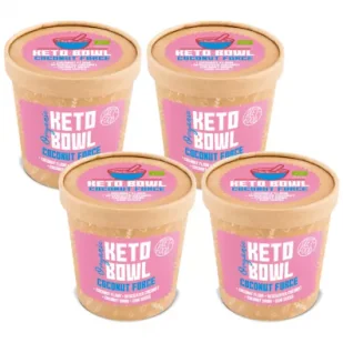 Alternatywa owsianki keto bowl o smaku kokosowym w kubku Zestaw 4 x 70 gLekki i pożywny posiłek, alternatywa dla owsianki lub musli, doskonała alternatywa dla osób będących na diecie ketogenicznej. Możesz go zabrać wszędzie, a jego przygotowanie zajmie tylko moment.