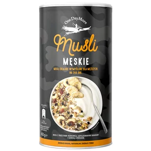 Źródło cynku: pomaga zachować zdrową skórę, włosy i paznokcie Cynk pomaga w utrzymaniu prawidłowej płodności i funkcji rozrodczych Poranna porcja białka , które sprzyja wzrostowi masy mięśniowej i pomaga w jej utrzymaniu Pyszny, bananowo-czekoladowy smak Zero aromatów Składniki: płatki owsiane 40%, pestki dyni 12%, granola owsiana 11% (płatki owsiane, syrop daktylowy [daktyle 100%], inulina z cykorii, nasiona słonecznika 4,9%), nasiona słonecznika 10%, rodzynki (rodzynki, olej słonecznikowy), czekolada gorzka 6,7% (miazga kakaowa, cukier, tłuszcz kakaowy, emulgator: lecytyny słonecznikowe), orzechy nerkowca 6%, ekspandowana pszenica orkisz, liofilizowane banany 3,8%. Może zawierać: orzeszki ziemne, inne orzechy, nasiona sezamu, mleko, soję.