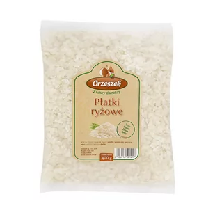 Płatki ryżowe Orzeszek - 400 g Płatki ryżowe Orzeszek Bardzo krótki czas przygotowania bez straty składników odżywczych powoduje, że jest to idealny produkt dla każdego miłośnika zdrowego trybu życia. Z uwagi na niską zawartość tłuszczu oraz bogactwo wartości odżywczych płatki ryżowe są wysoko cenione przez dietetyków. ✔ Do zup mlecznych ✔ Do deserów Kraj pochodzenia: 1. Polska 2. Grecja Skład: płatki kokosowe 100% Przechowywanie: