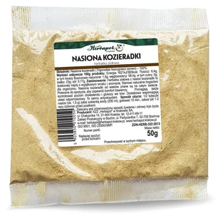 NASIONA KOZIERADKI Herbatka ziołowa Zawartość opakowania: Masa netto: 50g Składniki: Nasiona kozieradki (Trigonellae foenugraeci semen) - 100%. Wartość odżyw...