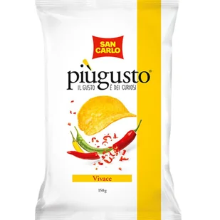 San Carlo Più Gusto Vivace 150 g włoskie chipsy o smaku papryczki chili San Carlo Più Gusto Vivace to wyraziste chipsy ziemniaczane o intensywnym smaku papryczek chili i przypraw. Każdy chrupiący plasterek łączy w sobie mocny aromat pikantnego chili z delikatną słodyczą cebuli i dymną nutą wędzenia – co sprawia, że przekąska staje się pełna charakteru. Wykonane z wyselekcjonowanych ziemniaków smażonych w wysokiej jakości olejach roślinnych, te chipsy są połączeniem jakości i odważnego smaku. Produkt idealnie pasuje jako przekąska na wieczór z przyjaciółmi, do filmu czy na imprezę, gdy szukasz czegoś zadziornego i zmieniającego zwyczajny krajobraz smakowy. Dlaczego warto wybrać San Carlo Più Gusto Vivace? smak papryczek chili i przyprawy – mocny, zdecydowany, włoski charakter; doskonała jakość ziemniaków i starannie dobrane składniki; idealne do dzielenia się – lub gdy sam chcesz się wyróżnić przekąską; marka z tradycją premium – włoskie pochodzenie dodaje autentyczności.