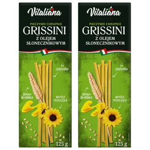 NaturaVena Paluszki chlebowe Grissini z olejem słonecznikowym Zestaw 2 x 125 g. Słodycze lub przekąska. Paluszki chlebowe Grissini z olejem słonecznikowym Zestaw 2 x 125 g Paluszki grissini to paluszki chlebowe wypiekane z dodatkami smakowymi Są chrupkie i nie za twarde, dzięki czemu łatwo się je
