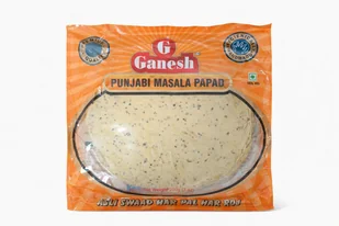 Papad (papadum) Punjabi masala Ganesh Punjabi Masala Papad 200g – ready-to-cook, pikantny pieprzowy profil, do curry i dipów Ganesh Punjabi Masala Papad 200g...