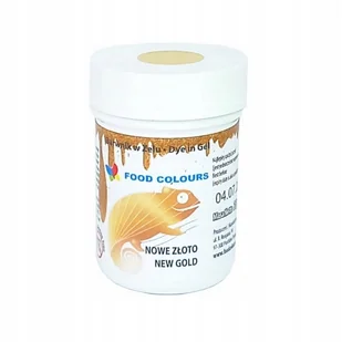 ZŁOTY Barwnik Spożywczy w żelu 35g Food Colours Żelowy barwnik spożywczy, łatwy w aplikacji. Idealny do barwienia masy cukrowej, marcepanu, kremu śmietankowego, lukru królewskiego czy izomaltu. Przeznaczony do celów spożywczych, nieprzeznaczony do bezpośredniego spożycia. Produkt nie zawiera glutenu. Produkt rozpuszczalny w wodzie, nie nadaje się do barwienia czekolady! Uwaga! Kolory przedstawione na zdjęciach mają charakter informacyjny i mogą różnić się od rzeczywistych kolorów.