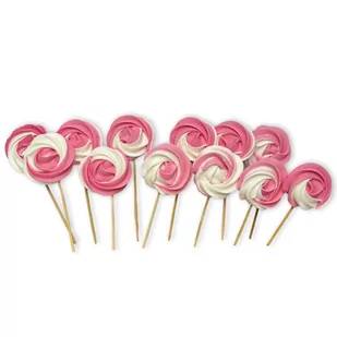 Bezy lizaki biało-różowe na patyczkach zestaw 12 szt