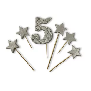 Cyfra 5 Na Tort Urodzinowy Toppery Srebrne Gwiazdy