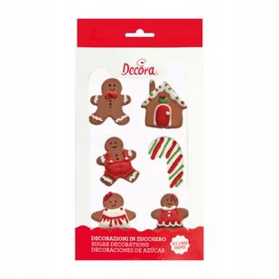 Ozdoba świąteczna na tort, ciasto w formie pierniczków Wymiary 3-4 cm Dekoracja cukrowa, gotowa do użycia. Produkt jadalny. W zestawie 6 figurek Składniki: c...