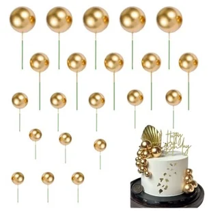 Ozdoby na tort dekoracje topper na tort złote kule na piku kulki 20s