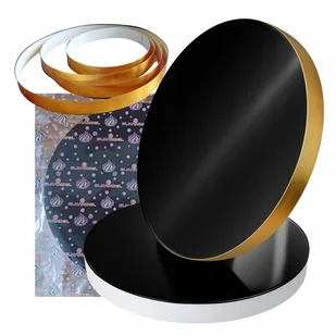 Podkład pod tort styrodur 32 cm gruby okrągły czarny podkładka sztywny mocny złota taśma dekoracyjna Do podkładu dołączona jest taśma dekoracyjna w kolorze z...