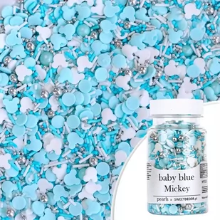 POSYPKA CUKROWA - baby blue Mickey - 70g NADAJ SWOIM SŁODKIM WYPIEKOM BLASK I NIEPOWTARZALNY DESING Doskonały sposób na efektowne dekoracje ciast, tortów i deserów typu lody, muffiny, bezowe lizaki etc. Błyszczące perełki , posypka, oraz confetti w kształcie myszki Mickey stanowią wiodący element wystroju deserów, urocze, słodkie, przyciągają wzrok. Autorska kolekcja posypek PEARLS x sweetdecor Posypki cukrowe sprawią, że Twój deser będzie w centrum zainteresowania ;) Opakowanie zawiera: 70 g Przechowywać w suchym i chłodnym miejscu. kraj pochodzenia Polska