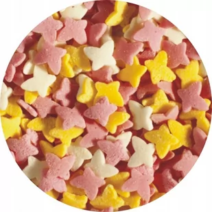 POSYPKA CUKROWA CONFETTI kolorowe MOTYLKI waga 50g +/- 1g Posypka doskonale nadaje się do dekoracji wypieków: tortu, muffinek, ciastek, lodów, itp. (średnica...