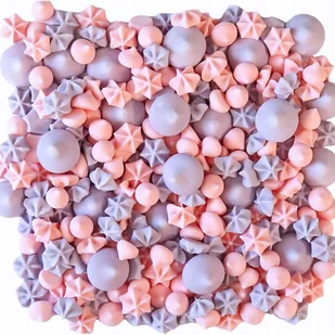 od około 1 cm do ok 2 cm - mogą nieznacznie różnić się wielkością i wyglądem. ✨Cechy: ☑️Bezy są jadalne, dzięki czemu nie trzeba ich zdejmować przed podaniem wypieków gościom. ✨Zalety: Łatwe w użyciu - wystarczy rozsypać lub ułożyć na wcześniej przygotowanym wypieku, deserach itp ✨Zastosowanie: Dekoracja cukrowa doskonale sprawdzi się jako ozdoba na torty, ciasta oraz mini porcji babeczek, desery, lody na różnego rodzaju imprezach i uroczystościach, takich jak baby shower, urodziny czy wesela. Zdjęcia aranżacji przedstawione w ofercie jest przykładową inspiracją.