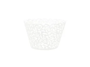 Papilotki papierowe na muffinki w kolorze białym z ażurowym wzorem. Wysokość papilotki: 5 cm. Opakowanie: 10 szt.