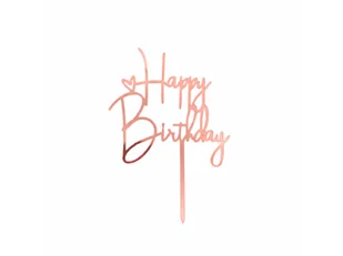 Napis Happy Birthday w kolorze różowego złota, idealna dekoracja tortu na urodziny.