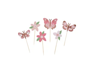 Papierowe toppery na tort pastelowe Motylki i Kwiatki.