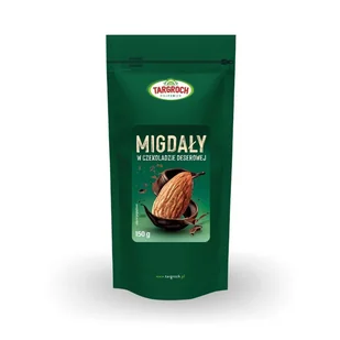 Targroch Migdały w czekoladzie deserowej 150 g. Słodycze lub przekąska. Migdały oblane czekoladą deserową Targroch to pyszna i słodka przekąska w ciągu dnia Opakowanie migdałów w czekoladzie możesz zabrać ze sobą do szkoły, do pracy, na wycieczkę bądź gdziekolwiek zechcesz!