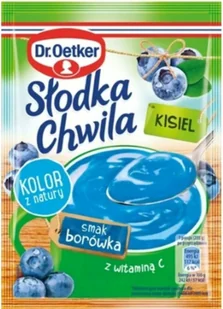 DR OETKER KISIEL SŁODKA CHWILA 29G BORÓWKA KARTON ZBIORCZY ZAWIERA - 35 SZTUK SKŁADNIKI: cukier, skrobia ziemniaczana, regulator kwasowości (kwas cytrynowy), witamina C, proszek borówkowy (sok borówkowy, maltodekstryna), ekstrakt spiruliny (dekstryna, ekstrakt spiruliny), aromat naturalny, sól. Możliwa zawartość Mleka i zbóż zawierających Gluten. Przechowywać w suchym i chłodnym miejscu