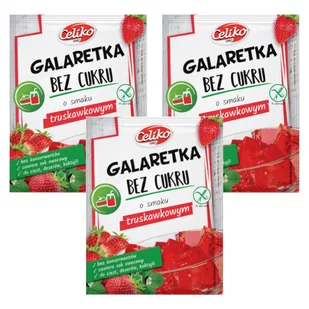 Celiko Galaretka o smaku truskawkowym bez dodatku cukru bezglutenowa Zestaw 3 x 14 g. Żywność. Galaretka o smaku truskawkowym bez dodatku cukru bezglutenowa Zestaw 3 x 14 gGalaretka bez cukru Celiko jest przeznaczona dla osób stosujących dietę niskocukrową, dbających o linię i używających. . .