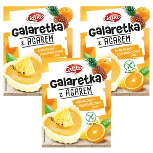 Celiko Galaretka z agarem ananasowo-pomarańczowa Zestaw 3 x 45 g. Żywność. Galaretka z agarem ananasowo-pomarańczowa Zestaw 3 x 45 gGalaretki z agarem Celiko to wyjątkowy produkt na rynku Zawierają agar zamiast żelatyny Ze względu na swój skład są odpowiednie dla wegetarian i wegan, osób. . .